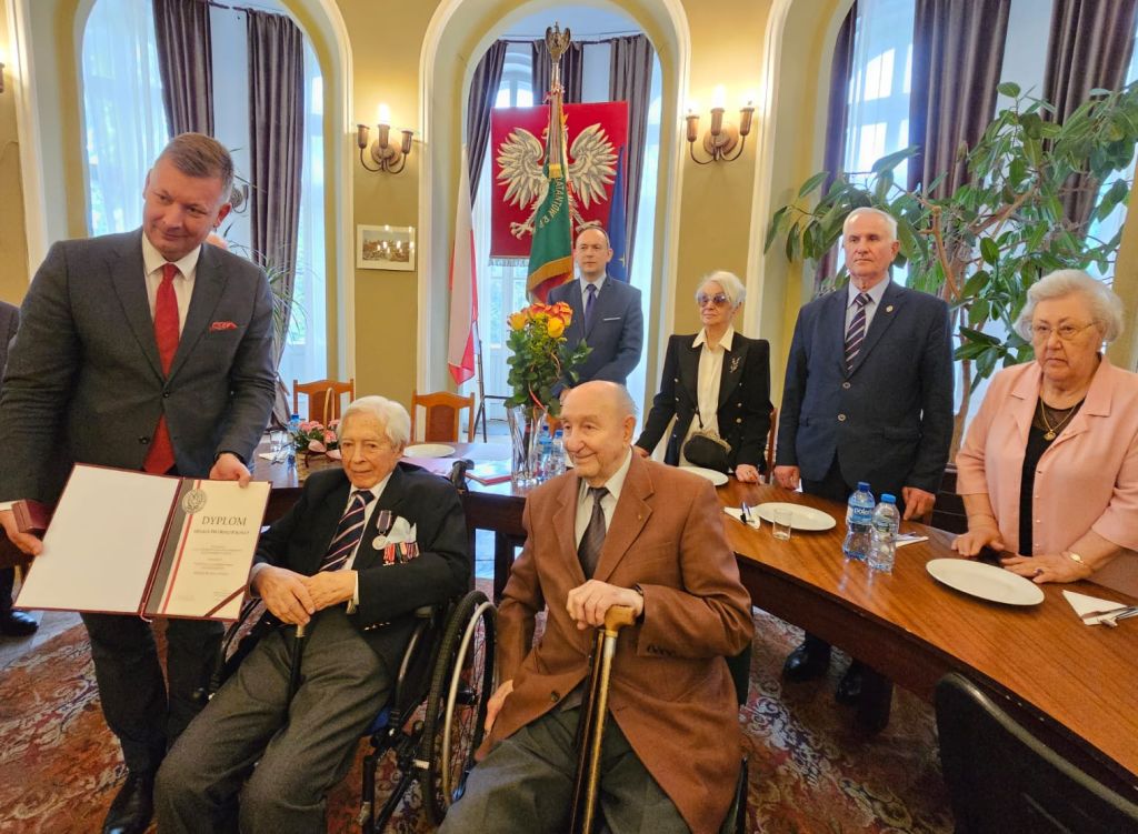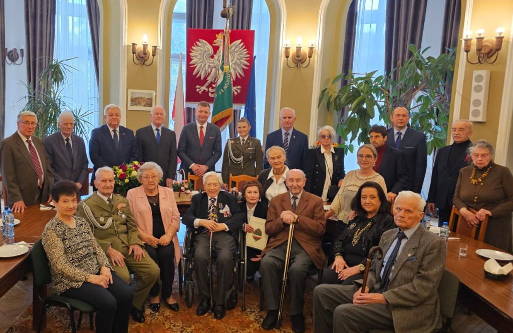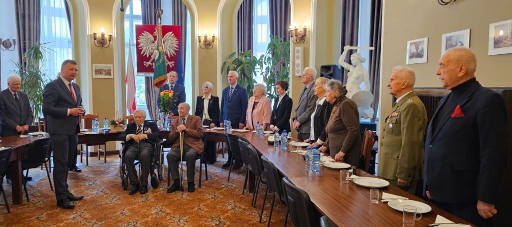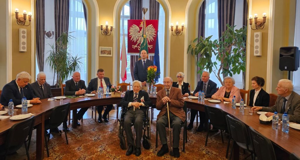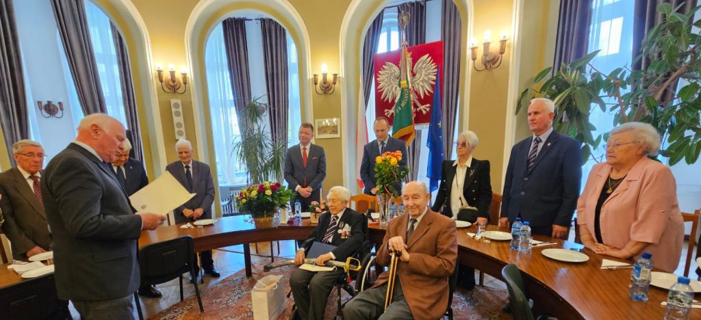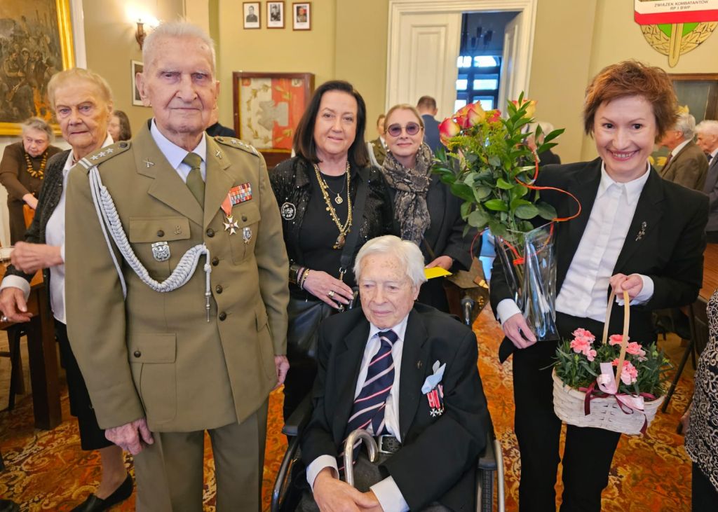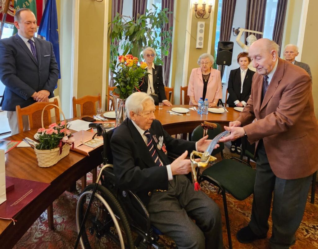 Następnie prezes Czesław Lewandowski uhonorował Jubilata pamiątkową szablą oficerską. Życzenia Jubilatowi złożyli: burmistrz Jarosław Karcz, prezes Waldemar Baranowski oraz Urszula Borowska – członkini Koła Związku Warszawa Mokotów Wilanów.
