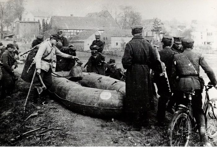 Tymczasem prom już wraca. Saperzy nawołują do pośpiechu. Przywieźli najświeższe wiadomości, z których wynikało, że niemieckie czołgi kontratakiem spod Neurüdnitz odparły natarcie naszej piechoty, wspieranej tylko przez broń maszynową i moździerze batalionowe.